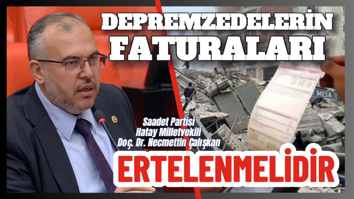 Saadet Partisi Hatay Milletvekili Doç. Dr. Necmettin Çalışkan, Türkiye Büyük Millet Meclisi'nde yaptığı konuşmada, deprem bölgesindeki esnafın karşı karşıya olduğu sorunlara dikkat çekti.