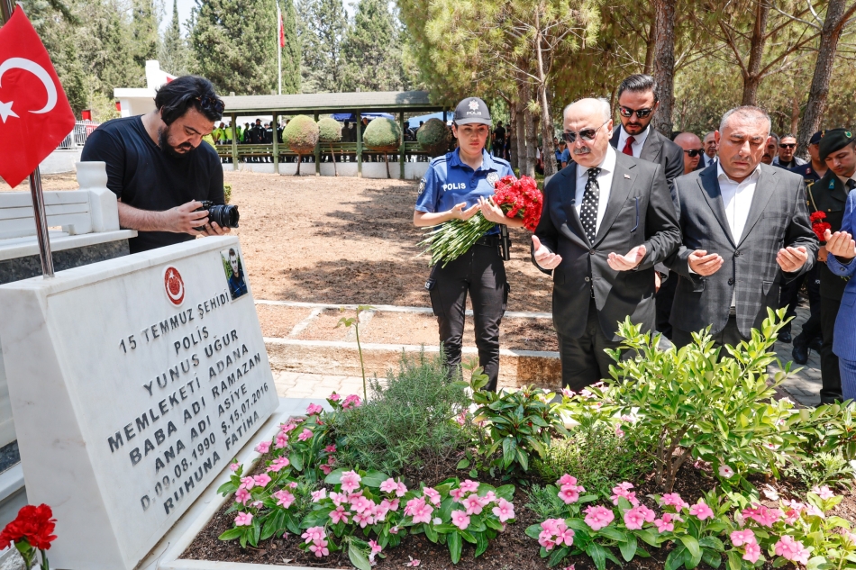 İlk olarak şehitlerimiz ikiz polis memurları Ahmet ve Mehmet Oruç’un Yüreğir Ali Hocalı Mahallesi Mezarlığındaki kabrini ziyaret eden Vali Köşger, şehitlerimizin kabirlerine karanfiller bıraktı ve şehitlerimizin yakınlarına baş sağlığı temennisinde bulundu.