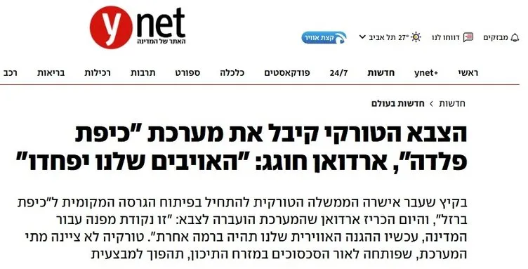 Yedioth Ahronoth, Başkan Erdoğan'ın, "Bir ülke kendi radar ve hava savunma sistemini geliştiremezse, özellikle bölgemizde mevcut güvenlik tehditleri karşısında geleceğe güvenle bakamayacaktır." sözlerine yer vererek, Türkiye'nin 12 günlük İran İsrail savaşından ve İsrail'in Suriye'ye saldırılarından rahatsız olduğu vurgulandı.