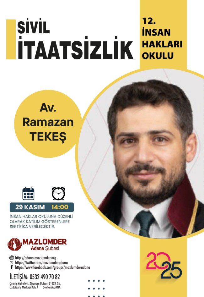 Dördüncü hafta (29.11.2025) Sivil İtaatsizlik -konulu ders için Av. Ramazan Tekeş