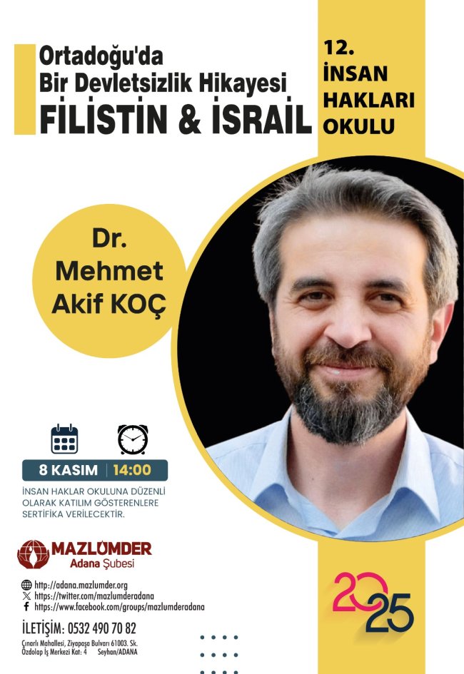 Ortadoğu’da Bir Devletsizlik Hikayesi; Filistin ve İsrail - konulu ders için Dr. Mehmet Akif Koç