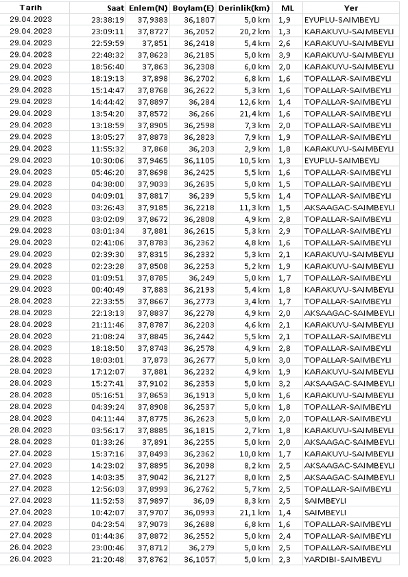 Adana Saimbeyli'de Sarsıntılar Durmuyor Saimbeyli'de olmaya devam eden depremlerin 4 günlük veri haritası. Hangi noktalarda depremler tekrarlıyor ve büyüklükleri neler? 30 Nisan 2023 - 03:39 Paylaş Tweetle WhatsApp YORUMLAR 0 Yorum adlı kullanıcıya cevap saimbeyli deprem saimbeyli depremleri saimbeyli deprem haritası saimbeyli deprem twitter saimbeyli deprem yorumları Günün Başlıkları 13:41 BAĞIMLILIKLA MÜCADELEDE TAM KOORDİNASYON İL GÖÇ KOORDİNASYON KURULU TOPLANTISI VALİ MUSTAFA YAVUZ’UN BAŞKANLIĞINDA YAPILDI YUNUS POLİSLERİ İLE EYLEMCİLER ARASINDA ARBEDE: ASİM BAŞKANI COŞKUN'DAN SAĞDUYU ÇAĞRISI ADANA’DAN GAZZE’YE MEŞALELİ DAYANIŞMA: YÜZLERCE ARAÇLIK KONVOYLA SOYKIRIMA LANET VALİ MUSTAFA YAVUZ KOZAN'DA SonDakika: Saimbeyli'de Deprem Kısa Haberler