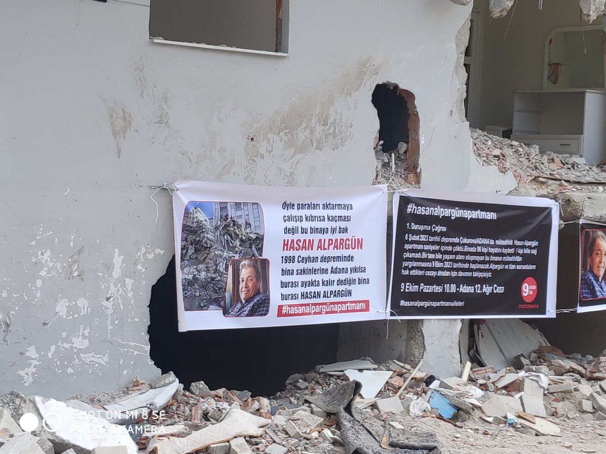 6 Şubat depreminde yıkılan ve hasar gören bina sakinleri ve hayatını kaybedenlerin yakınları yüksek sesle adalet talebinde bulunarak, müteahhit Alpargün'ün cezalandırılması ve uğradıkları zararın karşılanması için toplandılar.