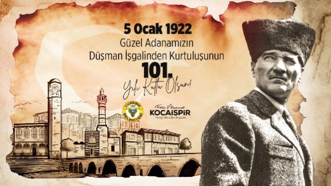 Yüreğir Belediye Başkanı Fatih Mehmet Kocaispir, 5 Ocak Adana’nın düşman işgalinden kurtuluşunun 101. yıl dönümü dolayısıyla bir mesaj yayımladı.
