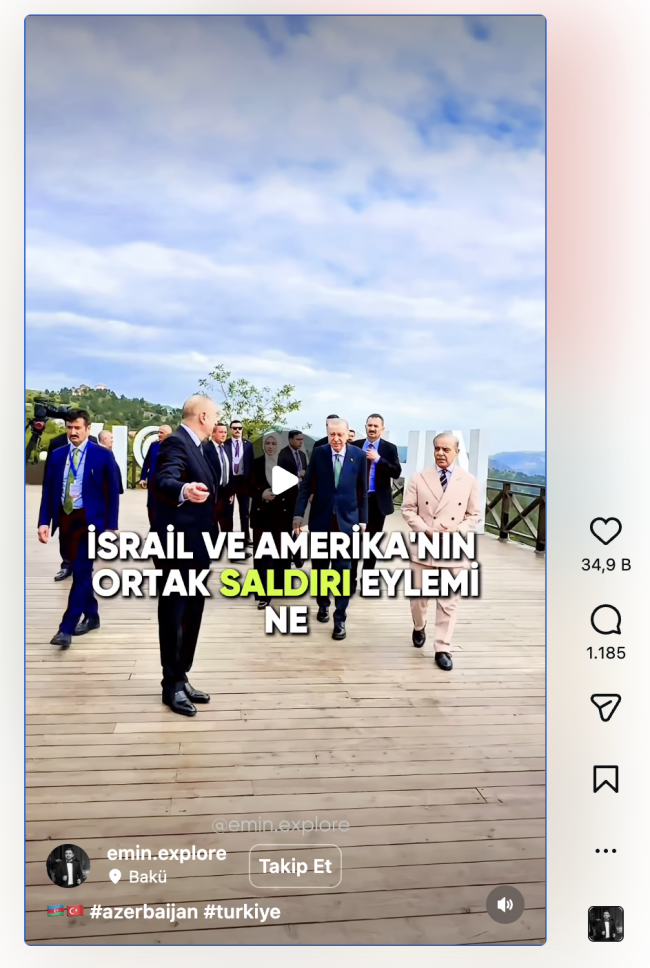 Nahçıvan saldırısının ardından Cumhurbaşkanı Recep Tayyip Erdoğan ve Azerbaycan Cumhurbaşkanı İlham Aliyev’in temaslarından oluşan bir video kolajı ABD merkezli sosyal medya uygulaması Instagram’da paylaşıldı. Kısa sürede gündem olan videonun arka planında Cumhurbaşkanı Erdoğan’ın kendi sesinden şu ifadeler duyuldu: