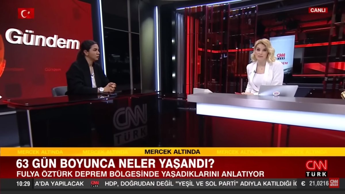 Adanalı başarılı gazeteci Fulya Öztürk, ilk anlarda deprem bölgesine giderek felâketin boyutlarını  dünyaya duyurdu.