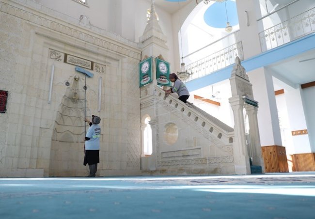 Yüreğir Belediyesi Temizlik İşleri Müdürlüğü ekipleri de depremzedelerin sığındığı ibadethaneleri özenle temizliyor