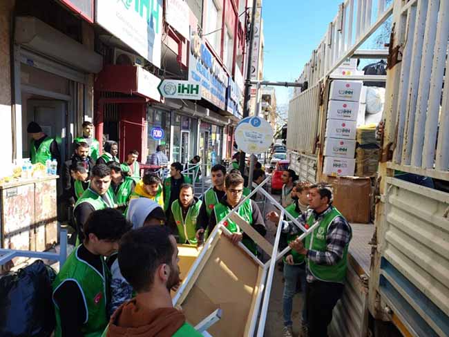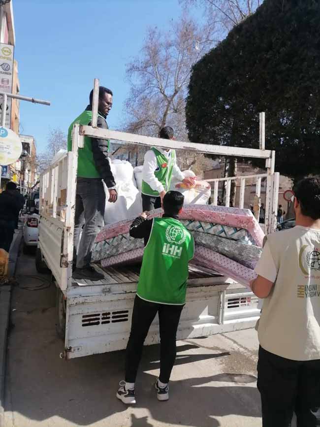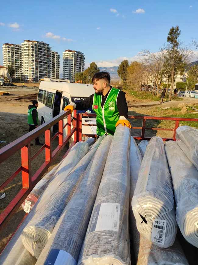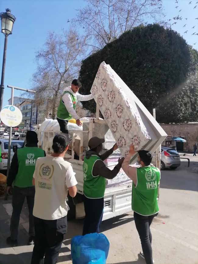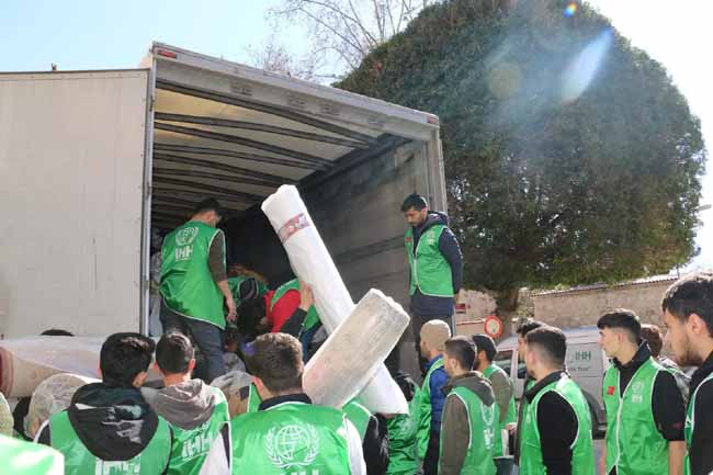 Depremi yaşayan illere yönelik ihtiyaçların karşılanmasına destek veren İHH Adana, şuana kadar genel merkezin koordine ettiği illere 43 kamyon ve kamyonetlerle yatak battaniye gıda kolisi soba yakacak el feneri jeneratör gibi birçok malzeme yerine ulaştırdı.