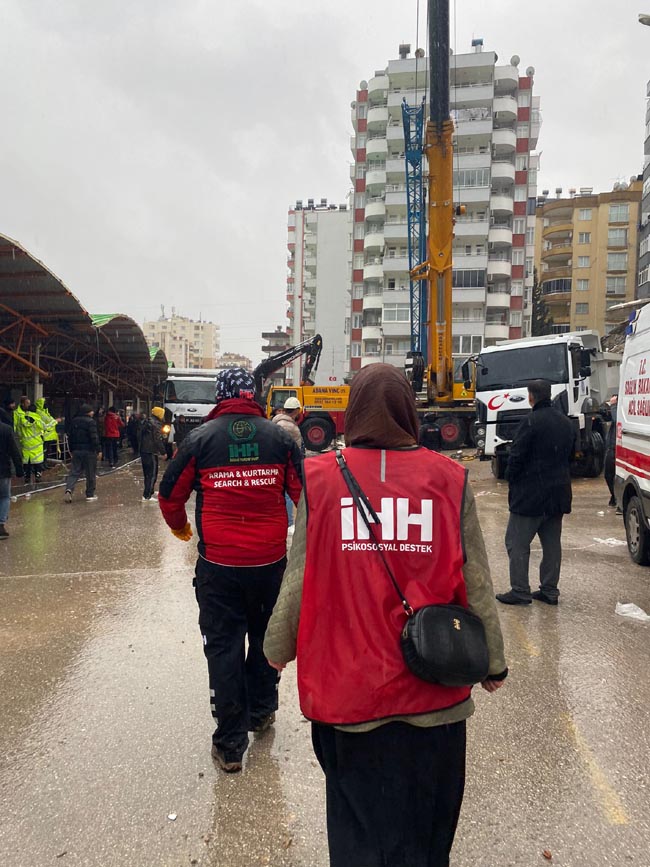 İHH Adana ekibi Adana'da, enkaz altında vefat eden 80 vatandaşımızı ve yaralanan 15 kişiyi enkaz altından çıkartarak sürece önemli katkı vermişler.