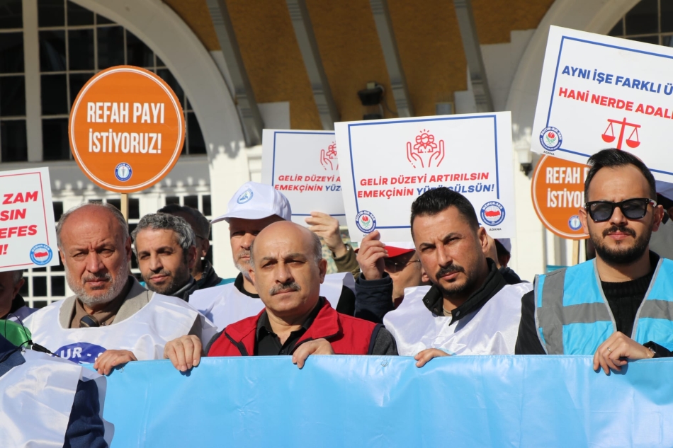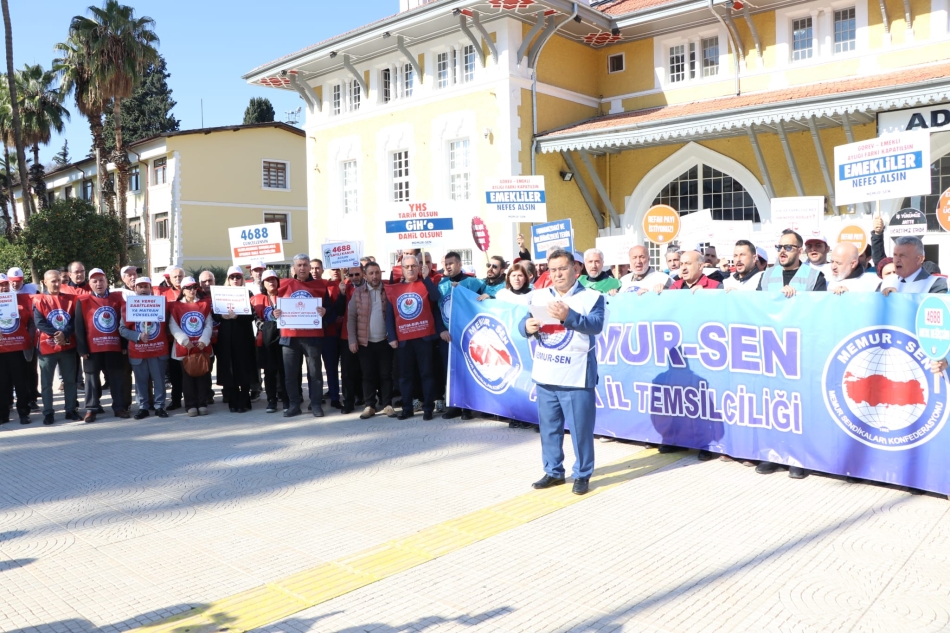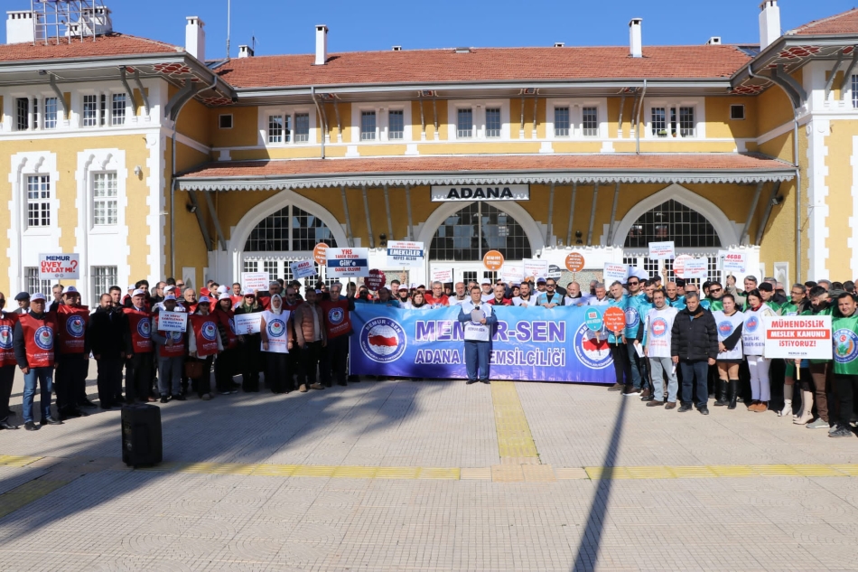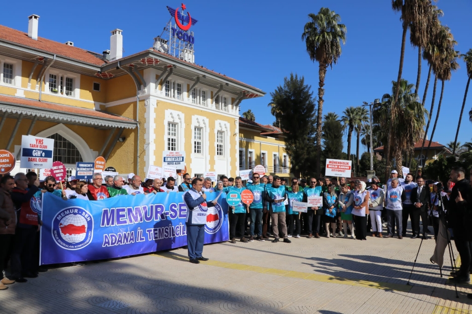 Memur-Sen Sendika Başkanı Bekir Nennioğlu Adana İstasyon Meydanı'ında basın açıklaması yaptı.