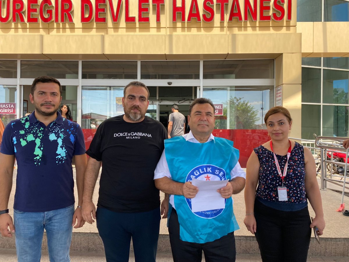 Memur-Sen Adana İl Temsilcisi ve Sağlık-sen Adana Şube Başkanı Bekir Nennioğlu Yüreğir Devlet Hastanesi önünde basın açıklması yaptı.