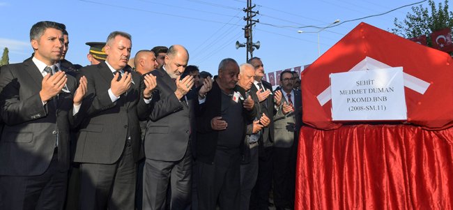 Şehidin 1 yaşındaki oğlu Ömer Duman’ı ise babasının cenaze töreninde yakınları tarafından yalnız bırakılmadı. Askerler şehit evladının ellerini öperek duygulu anlar yaşadı. Şehidin kardeşi İbrahim Duman ise şehit kardeşinin naaşının başından bir an olsun ayrılmadı, kardeşinin üniforması ile törene katıldı. Evinden helallik alınan şehit Piyade Komando Binbaşı Mehmet Duman, Sağkaya Camiinde düzenlenen cenaze törenin ardından tekbirler ve gözyaşları arasında toprağa verildi.