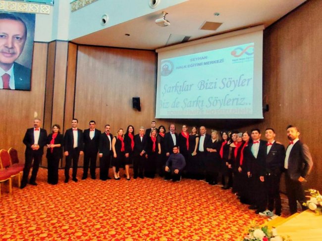 Milli Eğitim Bakanlığı tarafından yürütülen "Şarkılar Bizi Söyler Biz de Şarkı Söyleriz" projesi kapsamında Seyhan Halk Eğitimi Merkezinde görev yapan usta öğretici, öğrenci ve çeşitli meslek dallarından korist ve solistleri muhteşem bir Türk Sanat Müziği konseri sundu.