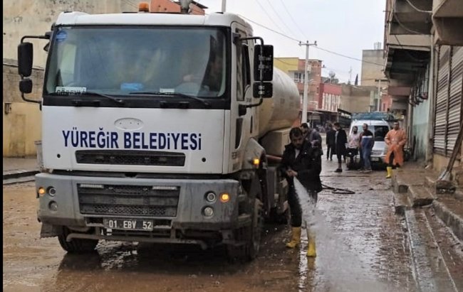 Yüreğir Belediyesi depremlerin ardından selin vurduğu Şanlıurfa’ya yardıma koştu. Temizlik ekipleri sel felaketinin ardından destek amacıyla bölgede çalışmalarını sürdürüyor.