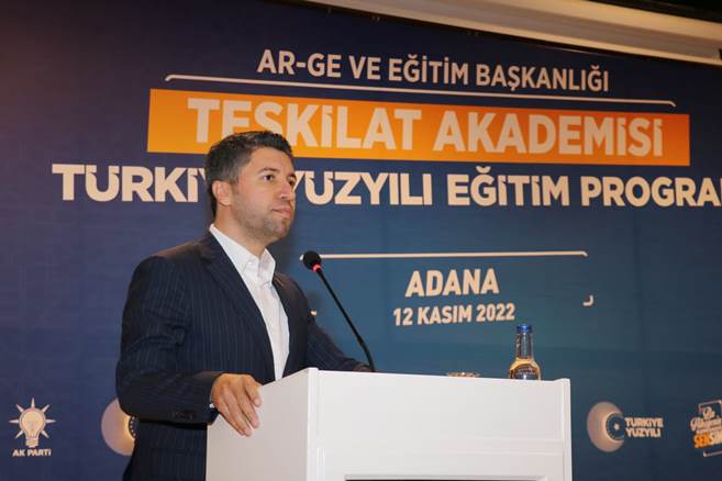 81 ilde düzenlenen ve Adana'da Cumartesi günü gerçekleştirilen Teşkilat Akademisi Türkiye Yüzyılı Adana Eğitim Programı, önceki dönem Ekonomi Bakanı, Cumhurbaşkanlığı Ekonomi Politikaları Kurulu Üyesi Nihat Zeybekci'nin 'Türkiye Yüzyılı' konulu sunumuyla başladı. Ardından sırasıyla, AK Parti İstanbul Milletvekili Hulusi Şentürk 'Seçim 2023', Gazeteci Taha Hüseyin Karagöz 'Siyasal İletişim ve Yeni Medya' konusunda bilgi verdi.