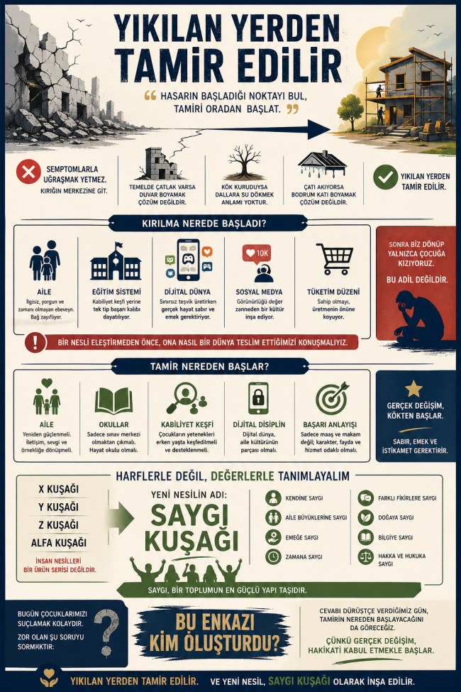 Çünkü yıkım yukarıdan aşağıya gerçekleştiyse, tamir de kökten başlamalıdır.