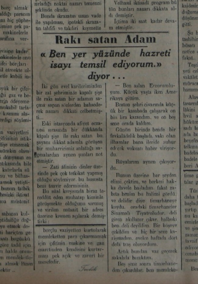 Rakı satan İsa, daha sonra aklına ne gelmişse gazeteye koşmuş ve: