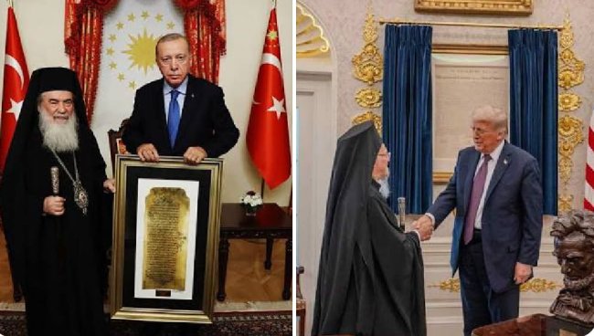 Görüşme sonrası Patrik Theofilos, Erdoğan’a, dünyaya adeta tokat gibi çarpan bir tablo hediye etti.