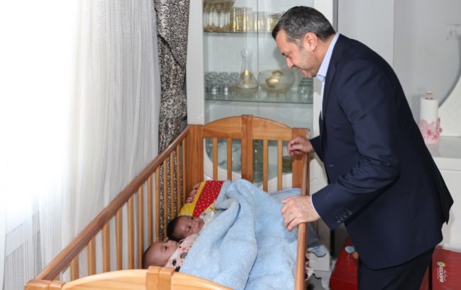 BAŞKAN KOCAİSPİR ÜÇÜZ BEBEKLERİ OLAN AİLEYİ ZİYARET ETTİ